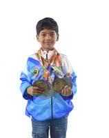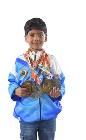 Explore stunning images showcasing the young athlete's impressive medal collection.